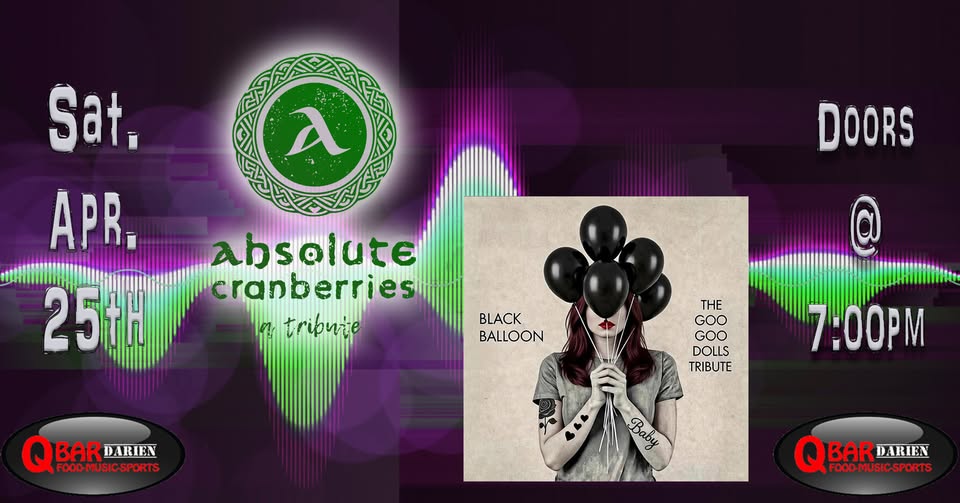 Come out to Q Bar Darien on Saturday, April 25, 2026 for a night music, dancing and good times when Black Balloon & Absolute Cranberries perform live.